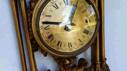 Vendo bellissimo orologio in stile antico color oro, da muro con numeri romani. È tutto intagliato, di materiale forse in vetro resina. Perfettamente funzionante con…
